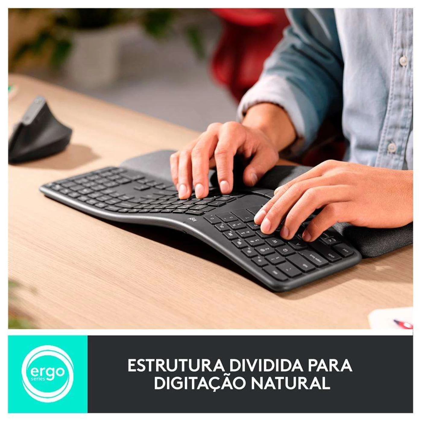 Digite mais naturalmente com o ERGO K860 - um teclado ergonômico avançado que promove uma postura de digitação mais relaxada - reduzindo a tensão do pulso em 25% e oferecendo 54% mais suporte para o pulso.