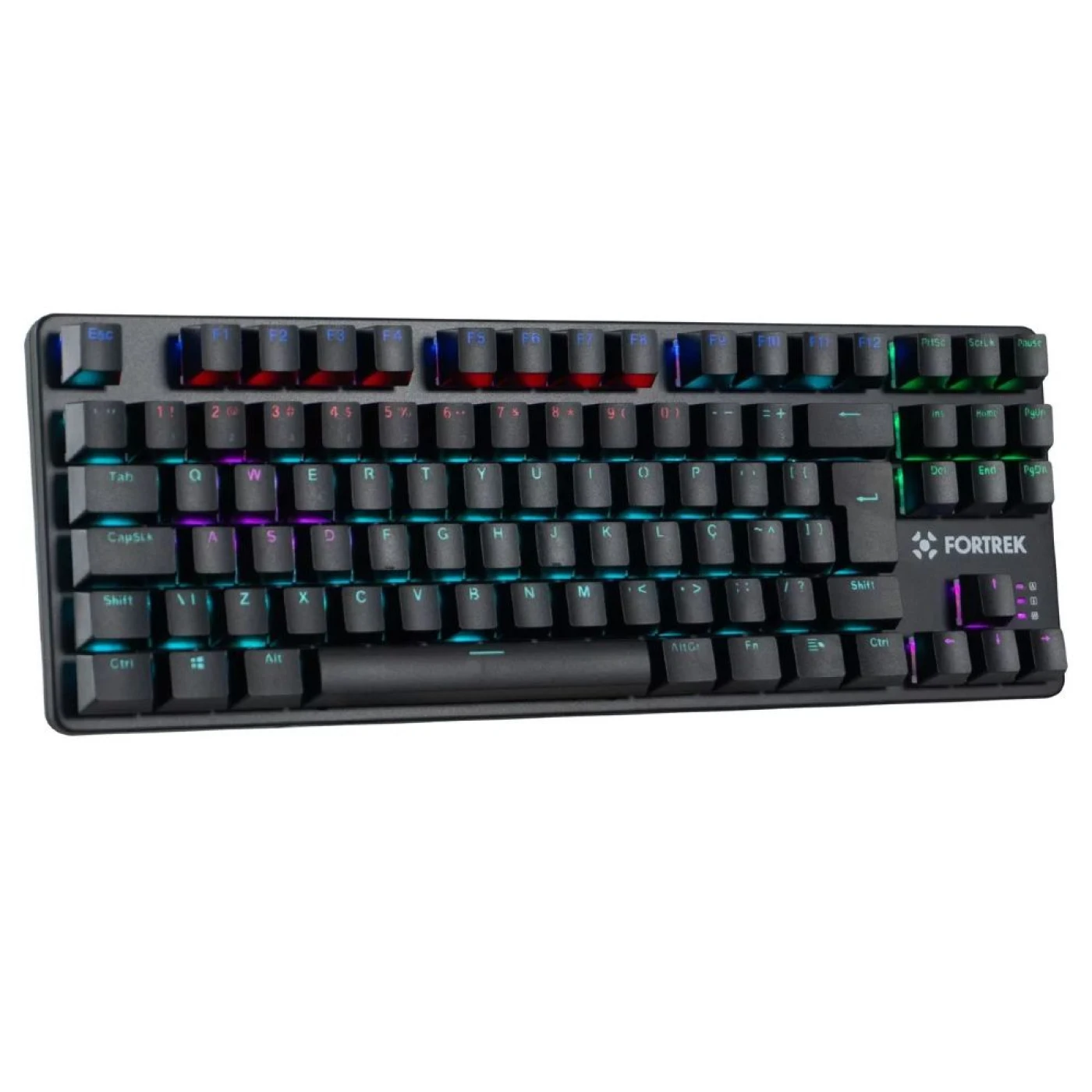 A Fortrek apresenta o novo Teclado Gamer Mecânico Compact Black Hawk, são 89 teclas no padrão ABNT2, durável, extremamente portátil, oferecendo muito mais espaço para movimentos e para o seu setup na hora da jogatina. Apresenta uma estrutura durável em metal e switches OUTEMU Brown, com um ótimo retorno tátil, equilibrado para velocidade e desempenho e mais silencioso. As teclas são de plástico ABS e Policarbonato com 30 tipos de iluminação sendo 20 efeitos de iluminação aleatório, 8 modos de jogo predefinidos e 2 que podem ser personalizados.