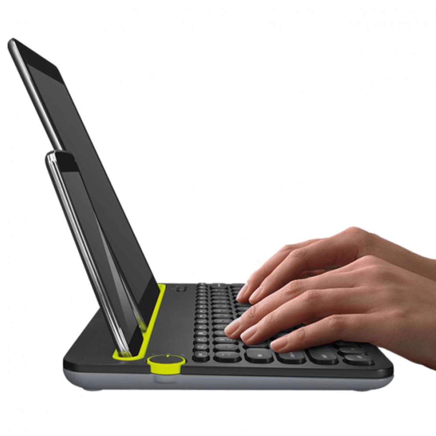 O K480 é um teclado sem fio com conexão Bluetooth e Multi-Device exclusivo para o seu computador ... que também funciona com o seu tablet e smartphone. O Easy-Switch permite que você alterne a digitação facilmente entre 3 dispositivos sem fio Bluetooth conectados e a base integrada mantém seu telefone ou tablet no ângulo certo para você ler enquanto digita. Você encontrará um layout de teclado familiar com todas as teclas de atalho que você mais usa, quer esteja digitando em um computador Windows, Mac ou Chrome, ou em um tablet ou smartphone Android ou iOS.