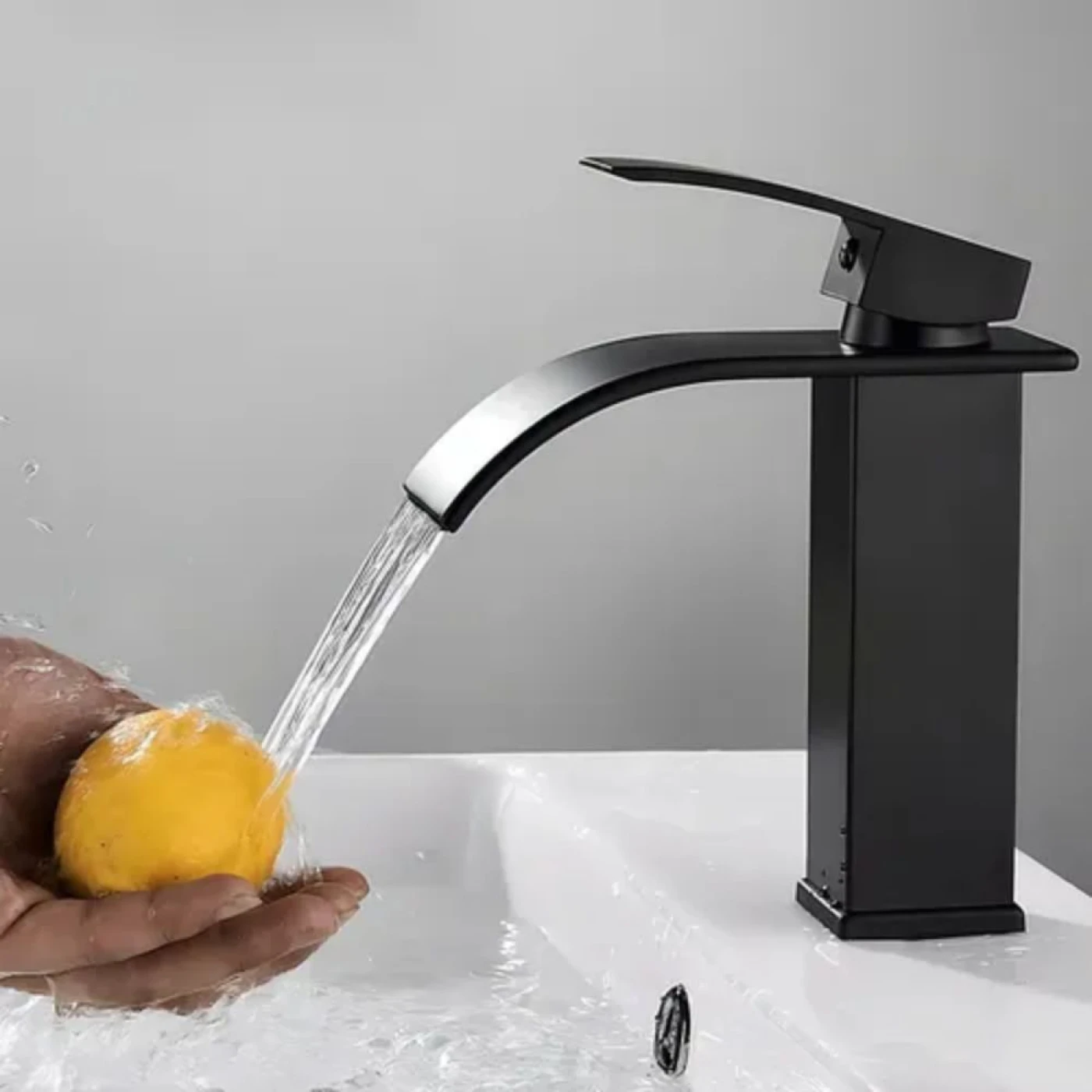Torneira Moderna Cascata Banheiro Baixa Inox Preto Wl-1258