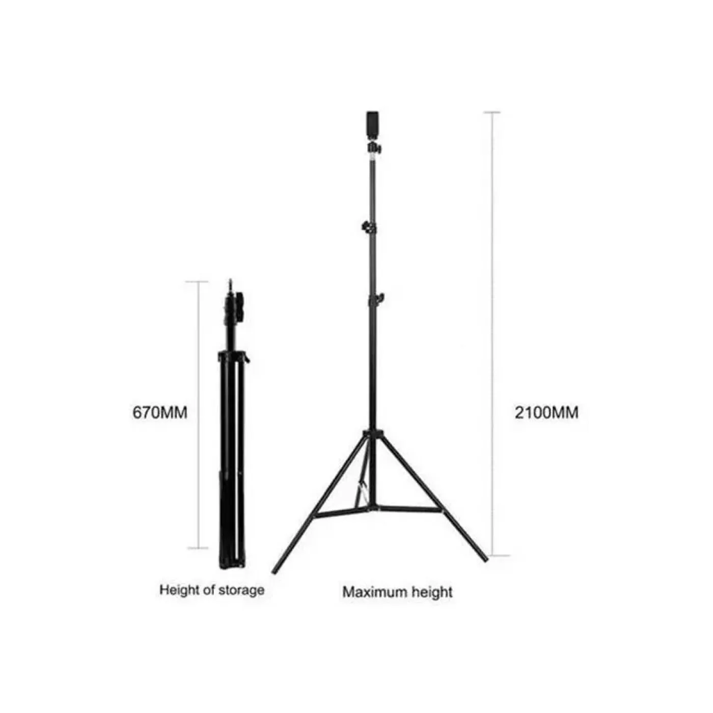 Com uma altura máxima de 2,1 metros, este tripé permite que você ajuste a altura do seu Ring Light de acordo com suas necessidades específicas. Seja para capturar retratos incríveis, gravar vídeos tutoriais ou realizar transmissões ao vivo, você pode posicionar a iluminação na altura ideal para obter os melhores resultados. Além disso, a altura ajustável é útil para criar uma iluminação uniforme e suave em diversas situações.