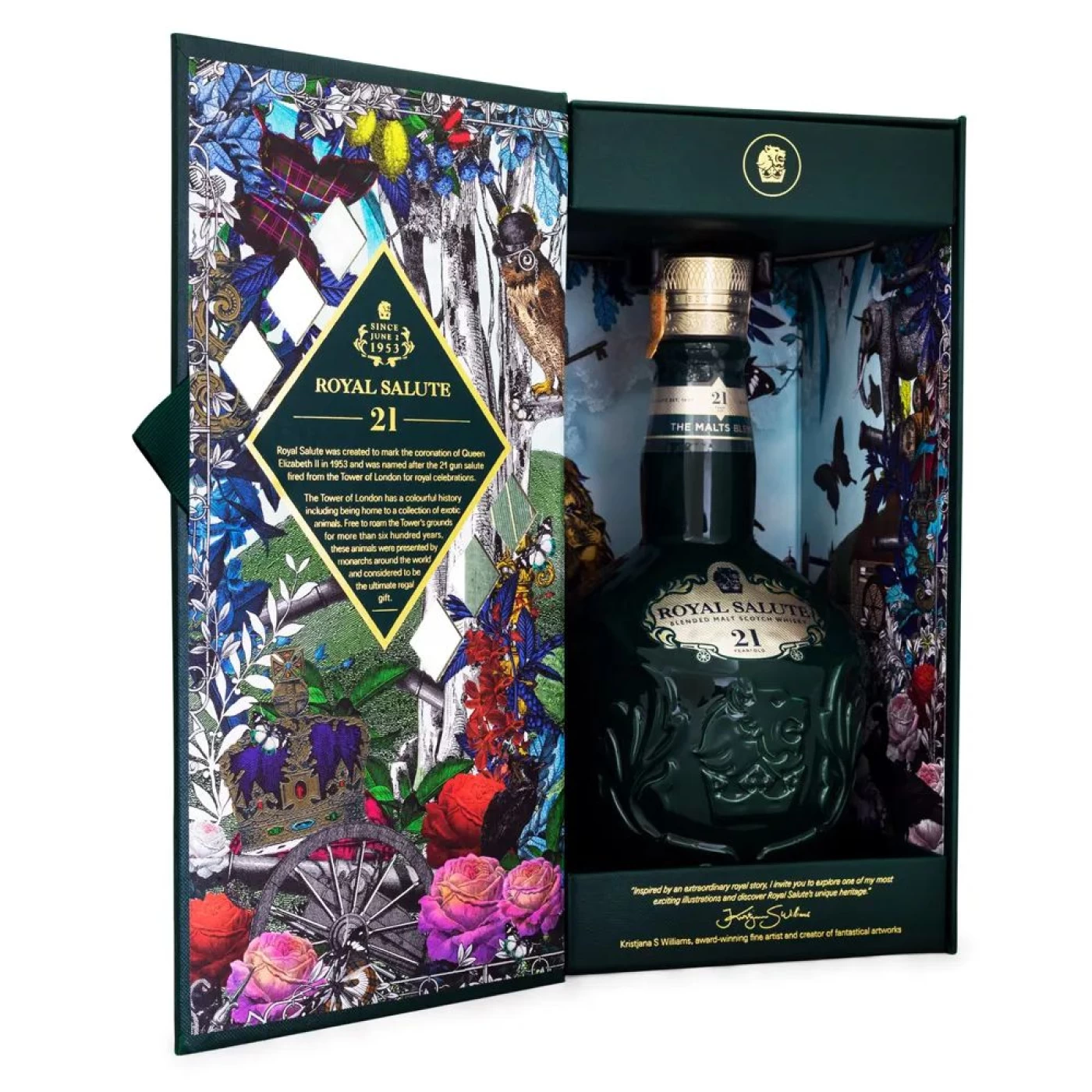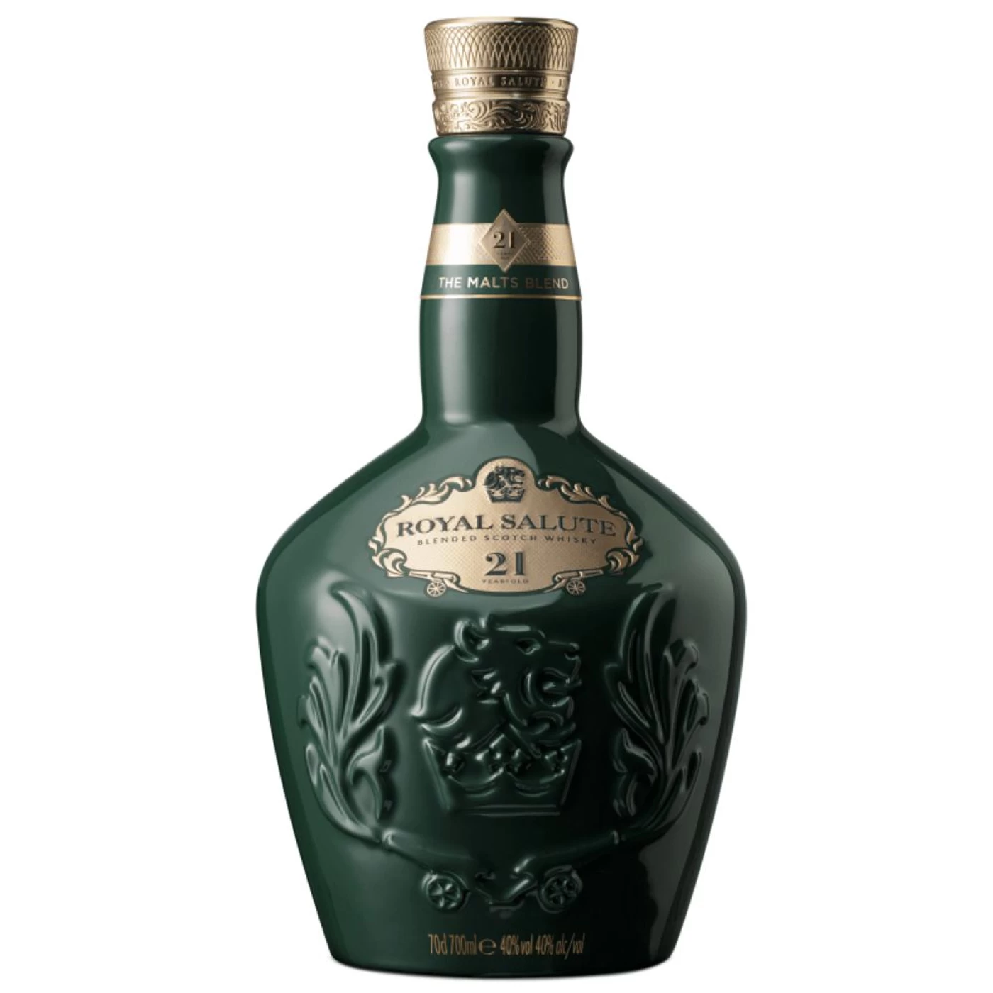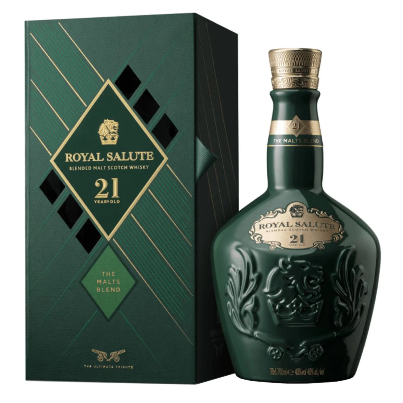 Produzido pela primeira vez em 1953 para marcar a coroação da Rainha Elizabeth II, Royal Salute continua celebrando o espírito de liderança e de nobreza. Apenas whiskies excepcionais, escolhidos nas reservas mais preciosas da Escócia, envelhecidos por pelo menos 21 anos podem compor o Royal Salute 21 anos.